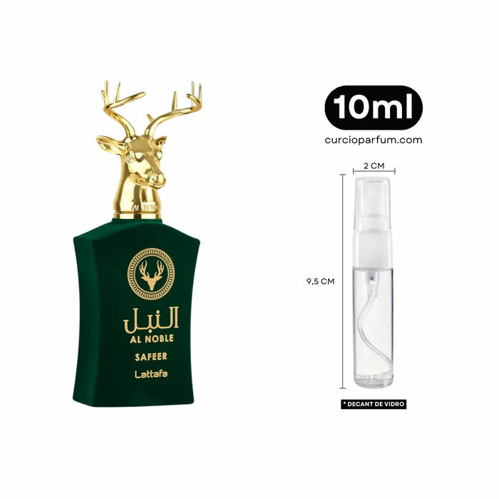 Safeer, da casa Lattafa, é um perfume compartilhável que traz uma combinação ousada e intrigante de notas verdes, especiadas e resinosas. Ideal para quem busca uma fragrância com assinatura única, personalidade forte e um toque exótico misterioso.